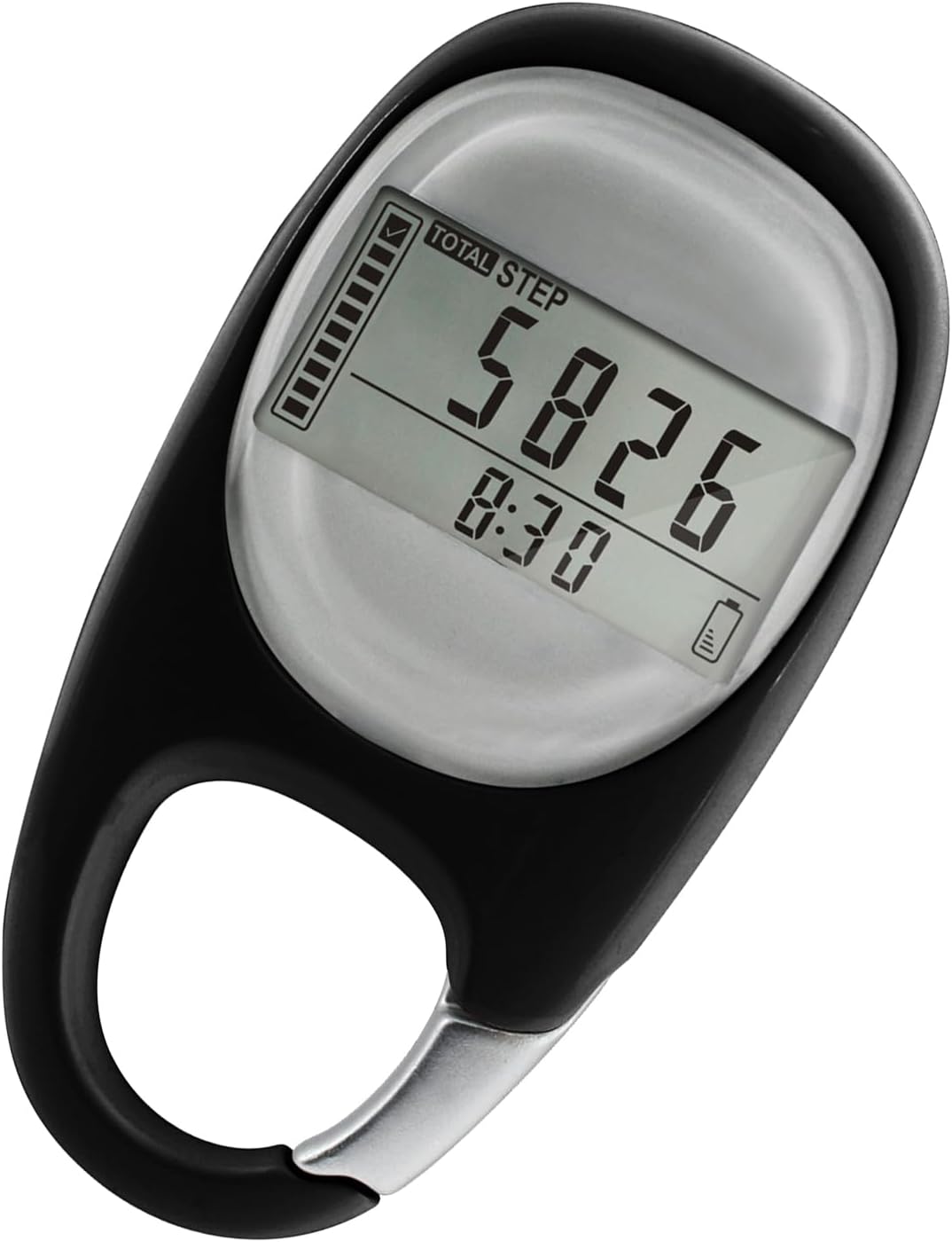 Introducing the Digital Pedometer Step Counter with Carabiner Clip in sleek Carbon Black. Stay motivated and track your daily steps with precision using this advanced pedometer featuring 3D sensor technology. Whether you’re walking, running, or hiking, this reliable step counter accurately monitors your progress every step of the way.